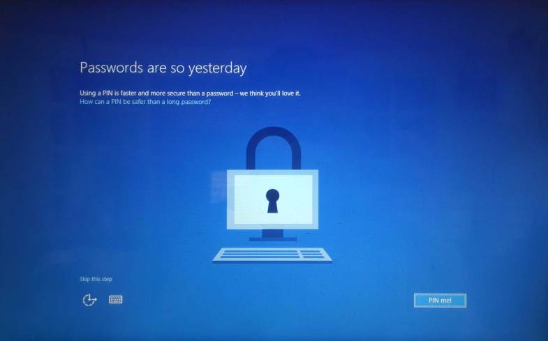5. ตั้งพิน (ตัวเลข) เพื่อการล็อกอินเข้าเครื่องที่สะดวกขึ้น คลิกที่ปุ่ม PIN me! เพื่อตั้ง ถ้าไม่ต้องการสามารถคลิก Skip this step ได้