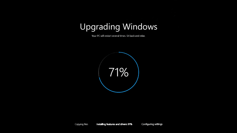 1. Windows 10 จะเริ่มทำการอัพเกรดหรือติดตั้ง แล้วแต่ว่าเราเลือกอะไรไป